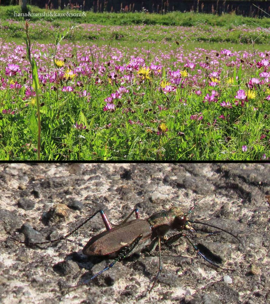 花と虫と風と空とさんの蓮華とオオジシバリ,マガタマハンミョウ,里山大好き協会の投稿画像