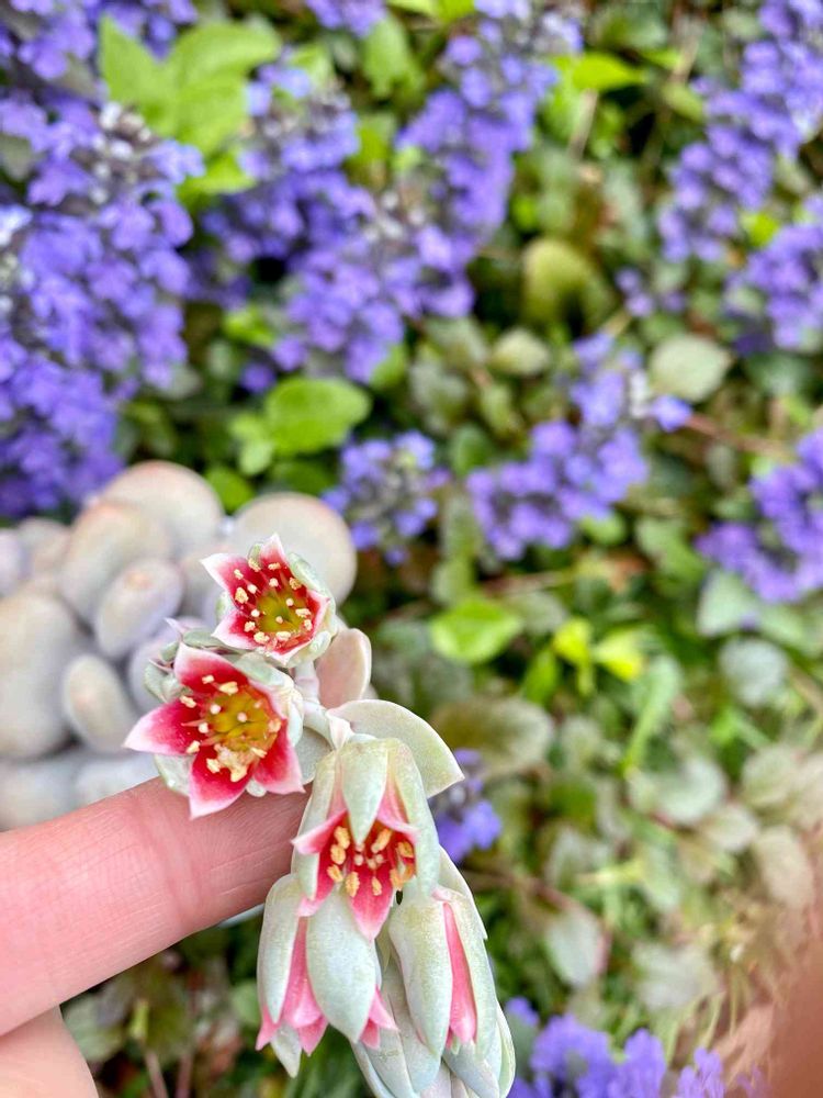 おばあちゃんちのアジュガも咲いてる咲いてる😍たぶん、いや絶対毎年咲いてたけど、去年までまっっったく目に入らなかった😗興味のあるもの、ないものが、どれだけ頭で認識してるか、してないかがよくわかるー😅今はそこら中の植物にお目めが👀👀👀