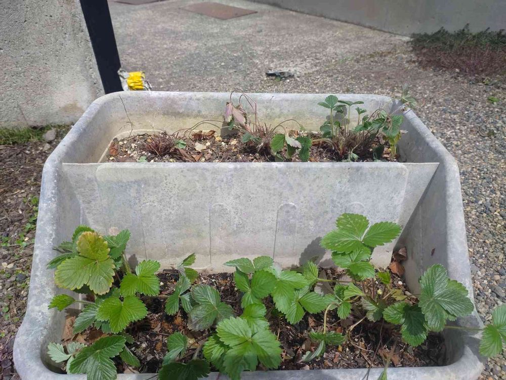 雨水も当たらない雪囲いの下から5ヶ月ぶりに自由になったワイルドストロベリー🍓