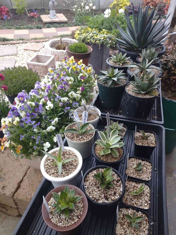 アガベはまだ小さいのが多いので秋までに成長して欲しいです⤴️