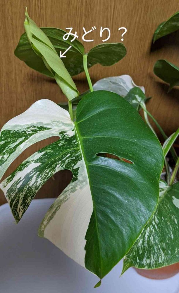 部屋,斑入りモンステラハーフムーン,斑入りモンステラ 緑の葉っぱの投稿画像