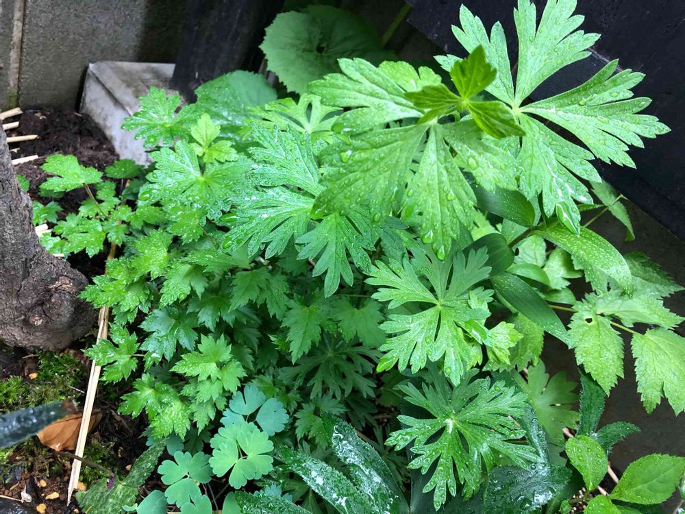 トリカブトを中心にサラシナショウマ、オダマキ、クリスマスローズが密集中。