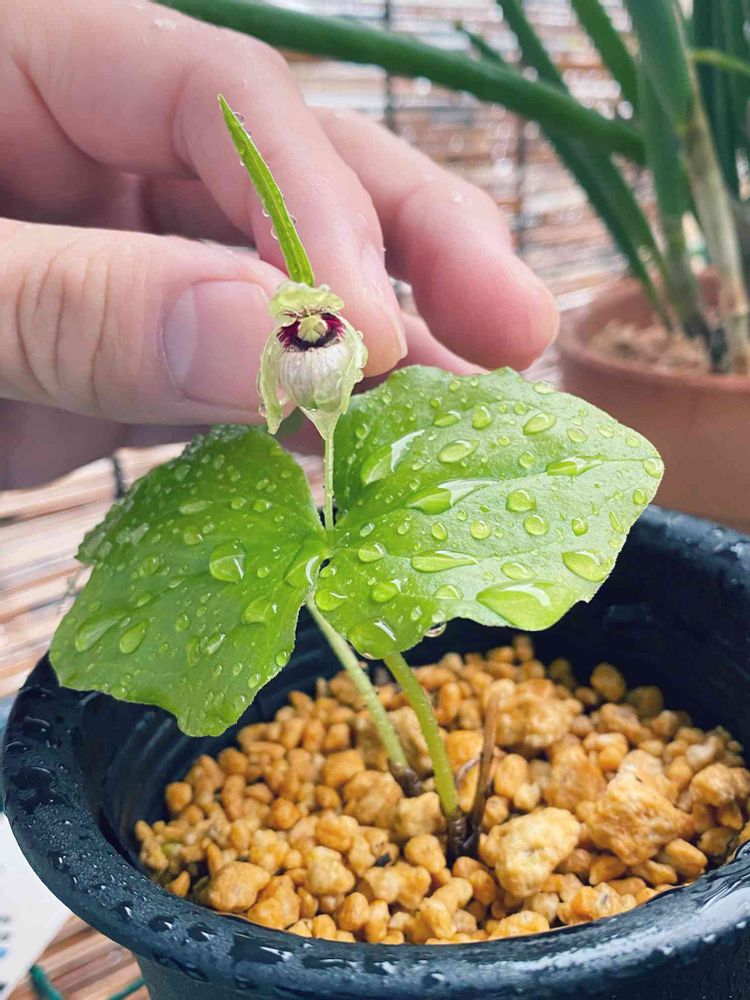 花が小さく下を向いているため、持ち上げないと見えない…。