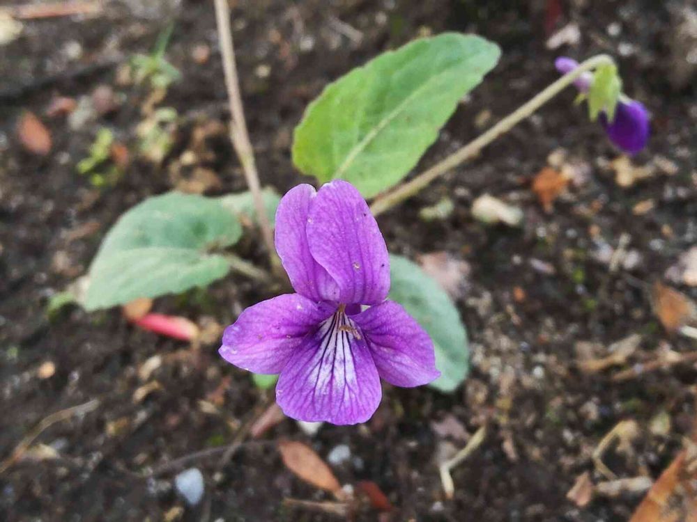 ・花期の葉は長さ3~6㎝の楕円状披針形で、縁が波打ち、スミレより基部が広く、やや三角に近い。