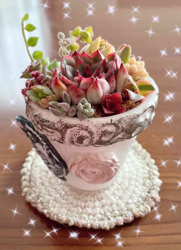 とても素敵なリメ鉢に なんと可愛いく寄せたね〜とてもUPpic素敵ですね〜💗✨