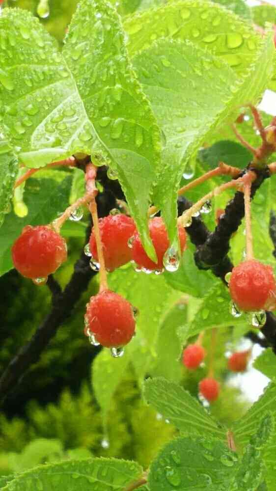 ☔の中 艶やかな赤い実🍒がなってるのに気づき近づいて見ると
