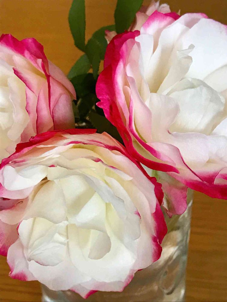 このバラ🌹は白が多めで咲くこともありました。今回、縁取りが濃く出てくれて嬉しいです💕
