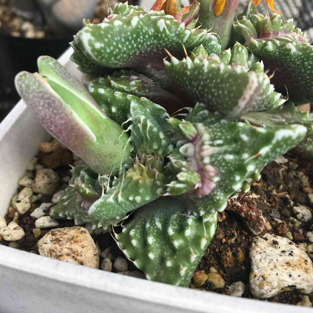 このフォーカリアも、最初は多肉の寄せ植え教室で入ってたものなんです。こんな気持ち悪いの寄せ植えに入ってるのやだ!!って後ろ側に植え込んで持ち帰り家に帰って寄せ植えから抜いてたんです。でも捨てるのもな…って単品で鉢に入れて毎日なんとなく眺めていたらだんだん愛着が…笑