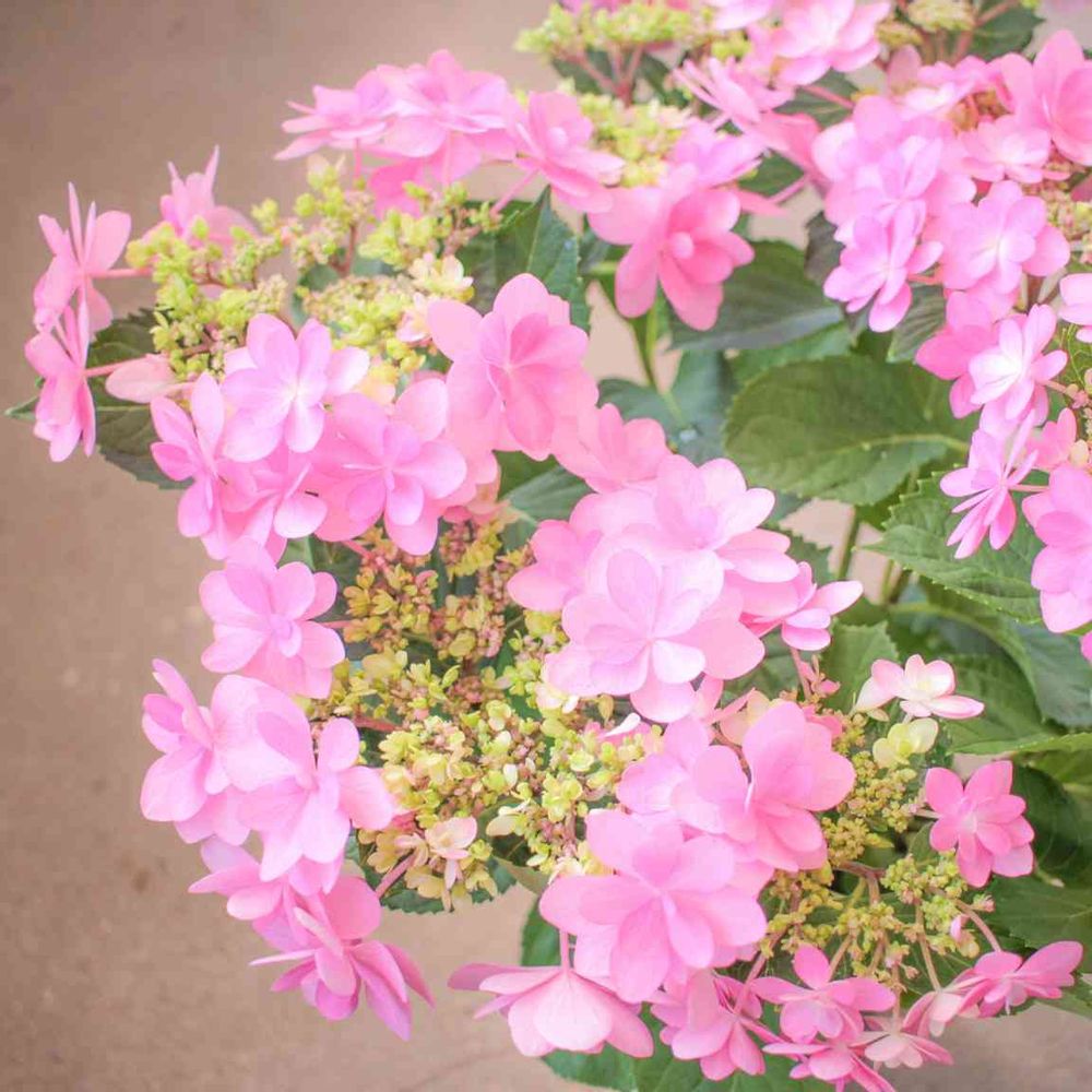 可憐なピンク色のガクアジサイで、花弁の先が丸くなっておりとってもキュート😊💕