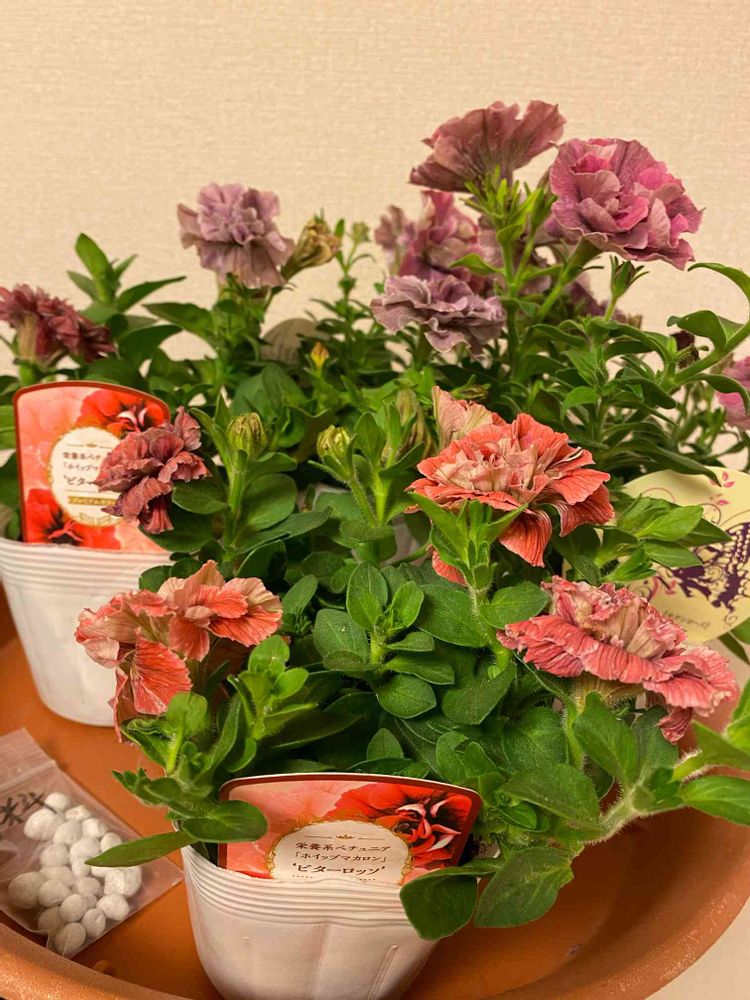 近場で見つからないのでネットで買っちゃった❣️ずーっと前から、いいないいなと思ってた八重咲きペチュニア♡本当はホイップマカロンのモカモンブランが欲しかったー😆