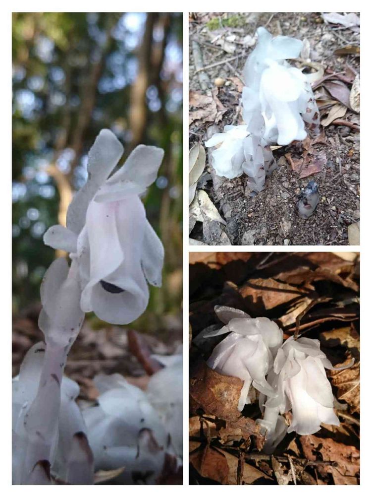 とても神秘的。腐生植物って、なんだか残念なお名前💧お肌は透き通るほど白く、根っこは枯れ葉色なんですね😳