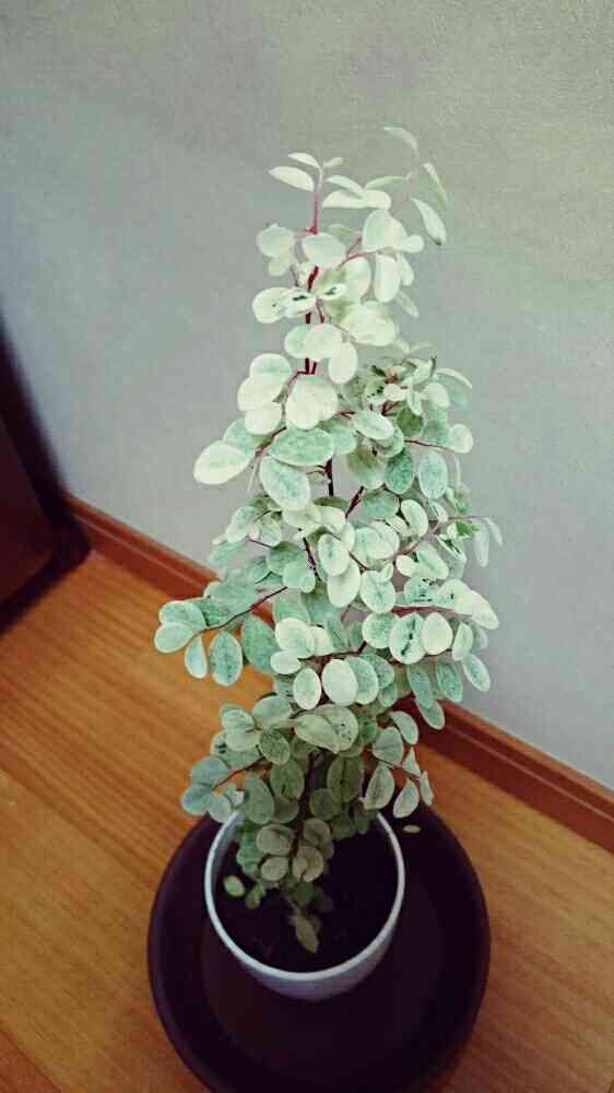 上の方の葉っぱが白く、枝はピンクっぽいです。
