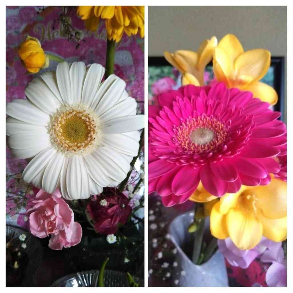 黒ねこさんの玄関,白い花,ピンクの花の投稿画像