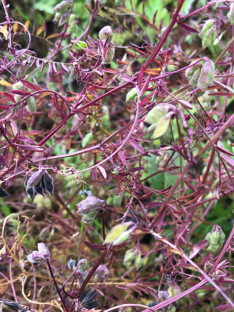 ここにカラスノエンドウもあって、、その子は黒い豆さやになってます。🌱