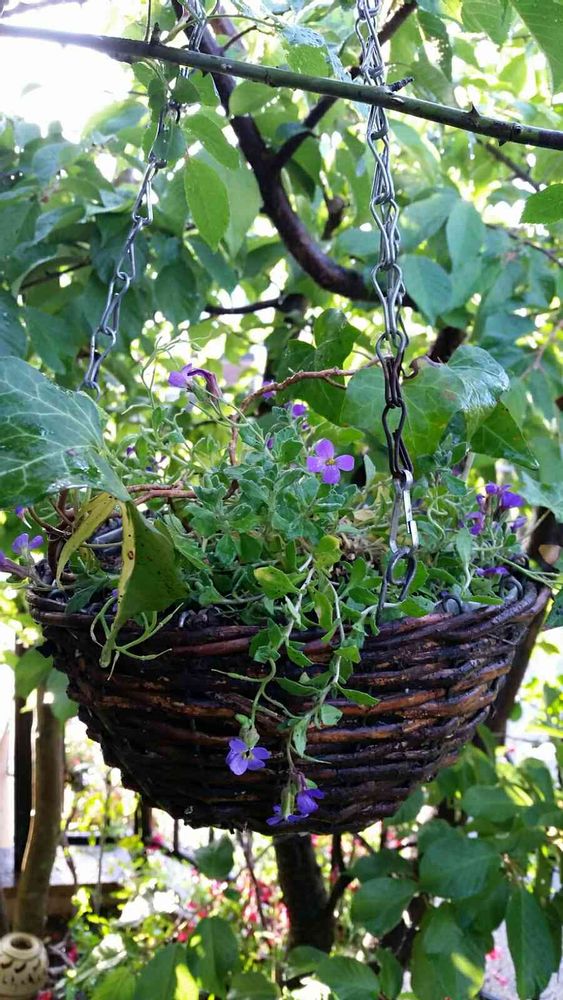 昨日、見切り品で迎えたオーブリエチア🌼🍀宿根草😄アイビーだけだったハンギングに植えてみました☺🎶