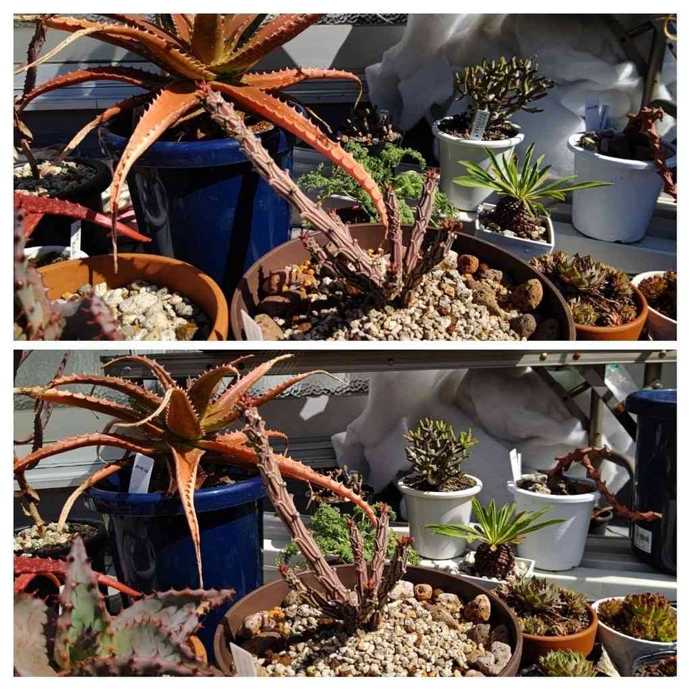 ⚫サボテン、アロエ、塊根など。 ⚫たまに「いいね」押してます。 --------------------------------------------------------- 【19.08】19年8月頃から徐々に多肉植物・サボテンの魅力に取り憑かれてしまいました。 【19.10.22】グリーンスナップを始めました。 【21年~22年】冬越しをほぼ室内避難しないチャレンジ。 【我が家の多肉植物・サボテン・観葉植物】220506時点 662/878 【セダム】3/6 ×春萌(19/11/3) ×プロリフェラ(20/2/1) ×薄化粧(20/2/5) ・※虹の玉(20/2/6) ・※虹の玉?乙女心?(20/2/6) 6・※黄麗(月の王子)(20/3/5) 【チレコドン】2/5 ×ブッコルジアヌス(19/11/3) ×スカエフェリアヌス 群卵(20/3/4) ×万物想(レティキュラーツス)(20/9/4) ・万物想(レティキュラーツス)②(20/10/2) 5・ワリチー(20/10/8) 【クラッスラ】10/17 ・天狗の舞(19/11/3) ・紅稚児(19/11/3) ×姫花月(19/11/3) ・テトラゴナ(19/11/12) ・火祭り光(19/12/4) ×花月錦白斑(19/12/4) ×※花月(金のなる木)(19/12/12) ・神刀錦(20/1/8) ×キムナッキー(20/1/10) ×10・※メセンブリアンセモイデス(ラージフォーム)(20/1/23) ×※花月?黄金花月?⇒火祭り錦?(20/1/23) ・巴(20/2/27) ・※火祭り(20/3/5) ・ゴーラム(20/12/16) ・神刀(20/12/24) ×アイボリーパゴタ(20/12/24) 17・spトランスバール ドラケンスバーグ(20/12/24) 【カランコエ】1/19 ・錦蝶(19/10/19) ×不死鳥錦(19/10/24) ×カーニバル(19/12/4) ×※月兎耳?(19/12/26) ×唐印(19/12/28) ×テディベア(20/1/10) ×ファング(20/1/11) ×ミロッティー(20/1/23) ×※黒兎耳?月兎耳?(20/2/6) ×10・※胡蝶の舞(20/2/6) ×星兎耳(20/2/12) ×ゴールデンバニー(20/2/12) ×福兎耳(20/2/12) ×姫黒兎耳(20/2/19) ×※シナモン?孫悟空?(20/2/19) ×キューエンス(20/2/19) ×※月兎耳(20/2/20) ×黒兎(20/2/20) 19×シナモン(20/2/21) 【センペルビウム】13/17 ×巻絹(19/9/6) ・パシフィックナイト(19/9/14) ・※百恵(19/12/12) ×※高嶺の華(19/12/12) ・※綾桜(19/12/12) ・※ファイヤーバード?パルグラム?(19/12/12) ・※レッドチーフ?ウラヌス?(19/12/12) ・※シャンハイローズ?(20/2/4) ・※神風?(20/2/4) ×10・※綾桜?(20/2/4) ・※麗人盃?(20/2/4) ・※雪牡丹?(20/2/4) ×※紅牡丹?(20/2/4) ・※ラウンドシーン?(20/2/4) ・※巻絹?(20/2/6) ・レッドベル(20/2/19) 17・※ご近所さん(20/5/17) 【ガステリア】39/43 ・春鶯囀バテシアーナ(19/11/20) ・グロメラータ(19/11/20) ・臥牛(19/11/20) ・リリプターナ(子亀姫)(19/11/20) ・白星竜(ベルコサ)(19/11/20) ・錦沙戸宝(19/11/20) ・ニティダ(19/11/22) ・フロッキー(19/11/22) ・姫子宝錦(19/11/24) 10・虎鉾(19/11/24) ・富士子宝錦(19/11/26) ・照姫(19/11/27) ・恐竜×大桑臥牛(19/11/29) ・颯々の松(19/11/29) ・ドラゴンスキン(19/12/2) ・名前不明⇒グリーンワイパー(19/12/4) ・黒鶯囀(19/12/4) ×臥牛錦 糊斑(19/12/4) ・白臥峰ダルマタイプ(19/12/4) 20・バイリシアナ×グロメラータ(19/12/10) ・ピランシー錦※斑多め(19/12/24) ・ピランシー錦※斑少なめ(19/12/24) ・臥牛竜(19/12/24) ・グラキリス(虎の巻)(19/12/25) ・ホワイトパール(20/1/7) ・白銀水牛(20/1/7) ・エクセルサ(20/1/8) ・ダルメシアン(20/1/10) ・タワー(20/1/23) 30・クロチェリー(20/1/23) ×ニグリカンス f.dark monstrosa(20/2/27) ・金剛殿(20/2/27) ×ラウリンソニー(20/3/13) ・幅広ピランシー(20/4/7) ・恐竜×白点臥牛(20/4/7) ・恐竜(20/11/9) ・ラウリンソニー②(20/11/19) ・恐竜②(21/1/12) ・恐竜×春鶯轉(21/1/13) 40・ホワイトパール②(21/1/13) ×ラウリンソニー③(21/2/10) ・エレフィアエ(21/4/13) 43・臥牛②(21/6/14) 【ディッキア】49/52 ・ハイブリッド(19/11/6) ・(アリソナ×マルニエルラポストレイ)×ボーン(20/2/21) ・アリゾナ(20/3/13) ・ニッケルシルバー(20/3/13) ・縞剣山錦(20/3/18) ・(ケリー×マセドイ)×ヘブディング ビッグブルーF1(20/3/24) ・ターザン(20/7/15) ・ゴエリンギー(20/7/15) ・エステベシー(20/7/16) ・グランマルニエル スノウ(20/8/21) ・ダウソニー(20/9/9) ・コリスタミネア パープルフォーム(20/9/16) ・マイケルアンドレス(ブリットルスターF3)(20/9/16) ・ゴエリンギー レッドクローン×ターザン(20/9/18) ・ターザナ(20/9/18) ・レッドボーン×スカイウォーカー(20/10/27) ・グランマルニエル(20/11/4) ・トゥーシ―F2(シルバークローン)(20/11/4) ・グレイオプス(20/11/5) 20・タイニーレッド×ヘブンアンドヘル(20/11/5) ・マルニエルラポストレイ エステベシー シーディング ブラジル(20/11/5) ・(レッドシャーク×ディストーション)×ジョーズ(20/11/5) ・ブラックアイス(20/11/6) ×ダウソニー×ガーネットクロウ(20/11/12) ・デリカータ(20/11/18) ・エステベシー×ゴエリンギ―(20/11/30) ・ゴエリンギーOPS セレクト ホワイト(20/11/30) ・(ソウフィッシュ×7a)×ターザン(20/11/30) ・ベアテアエ レッドクローン(20/12/07) 30・アリゾナ×HU-5(20/12/08) ・エステベシー②(20/12/08) ・ダコタ(20/12/09) ・マルニエルラポストレイ(20/12/10) ・エステベシー×ブリットルスターF2(21/1/8) ・マウンテンオブニードルズ(21/1/14) ・エステベシー③(21/1/27) ・パラファット(21/2/10) ・ジョーズ×ドナマリエ(21/3/15) ×フォステリア×エステベシー(21/3/15) ×40・フォステリア×エステベシー②(21/3/15) ・カタナ(21/3/24) ・スノーストーム×ブライヤーパッチ(21/3/24) ・ワサビ(21/4/7) ・ブラックアイス②(21/4/12) ・ブラ