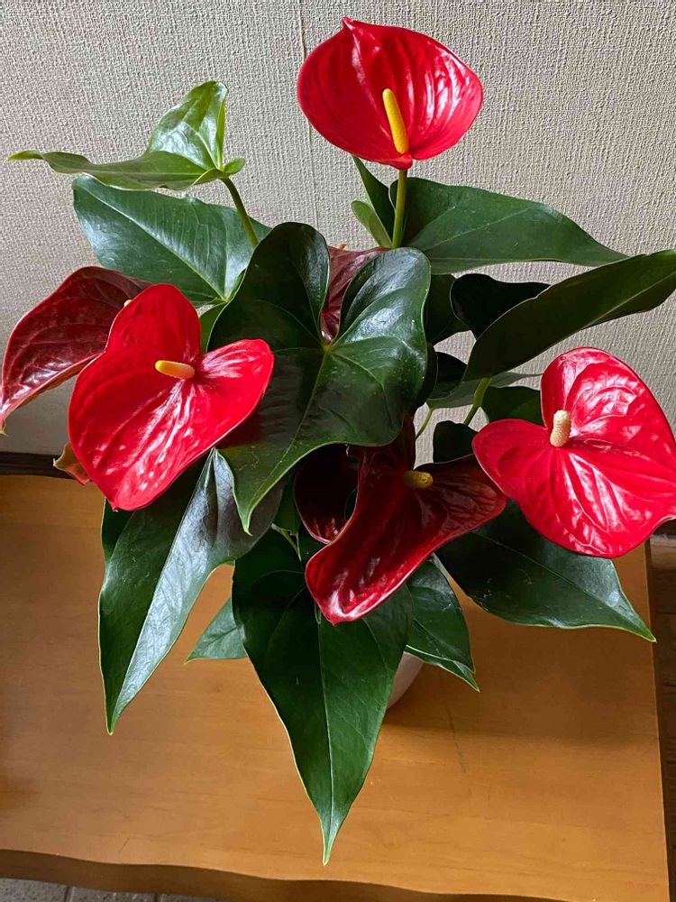 アンスリウム、わたしも大好きで今我が家にいる子は4代目です(死んでしまうと買う笑)そして4代目は買った時以来花が咲きませんよ笑笑