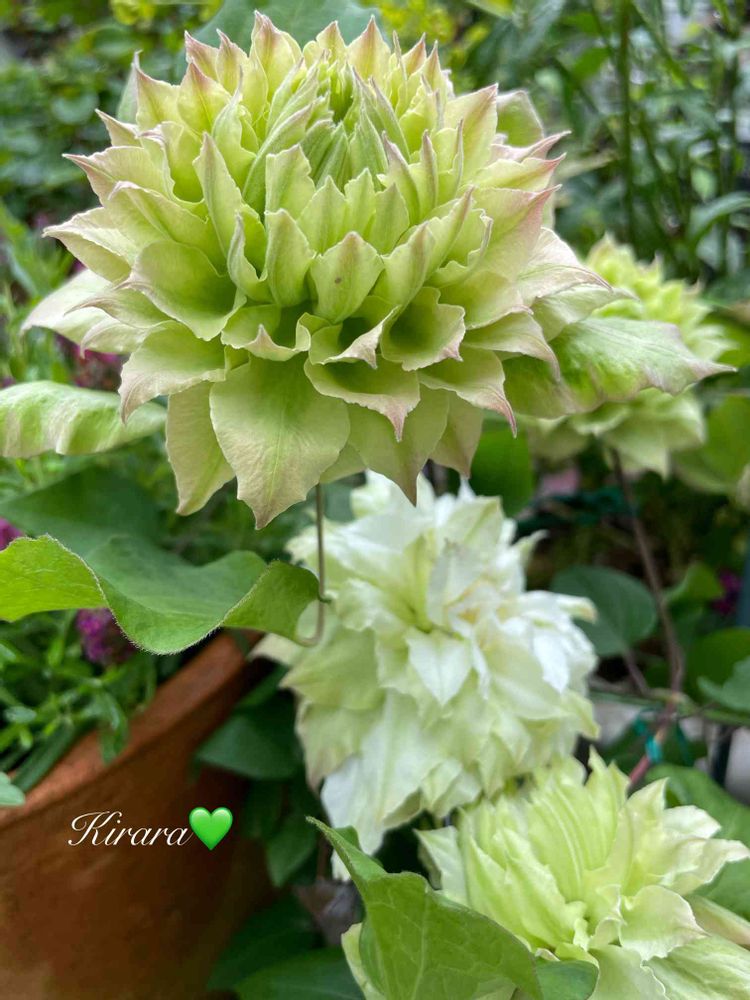 ”美登利” 〖みどり〗💚 グリーンの蕾から 開花するとふちが薄ピンクになり、白く変化する美しいクレマチスです゚+.゚(´˘`人)゚+.゚