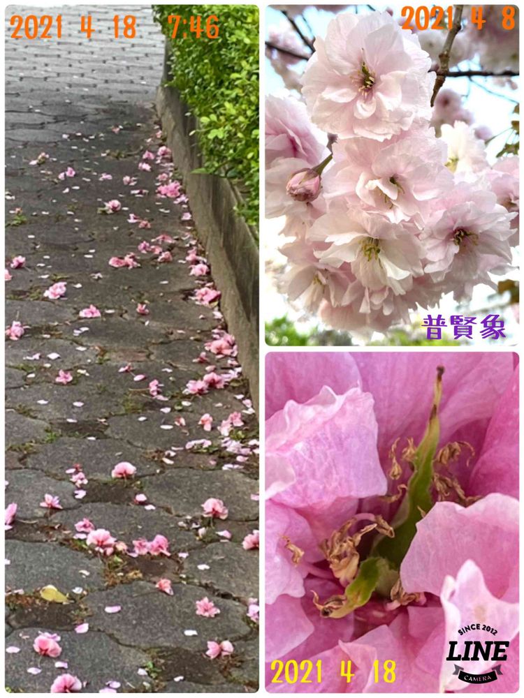 花びらが落ちないで花柄ごと落ちる時は濃いピンク色になる。