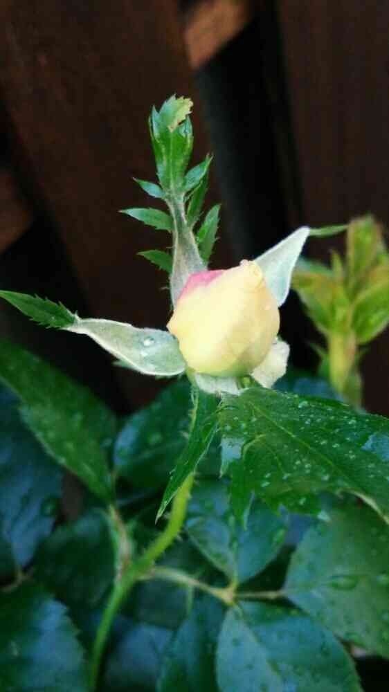 今朝は台風に耐えたバラのつぼみちゃん(^^)
