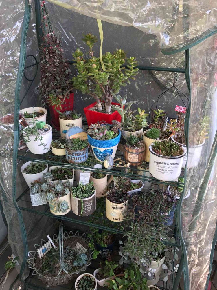 簡易ビニールハウスで守られた多肉ちゃん達✨🍀お掃除したら、もとの所に戻そうと思います。
