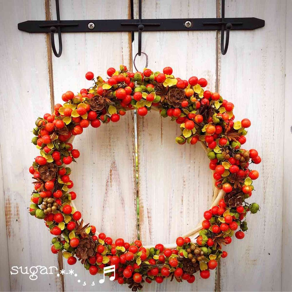 つやつやの赤い実✴ツルウメモドキ可愛いね~💕手作りするのってわくわく楽しいよね(´︶`♡)