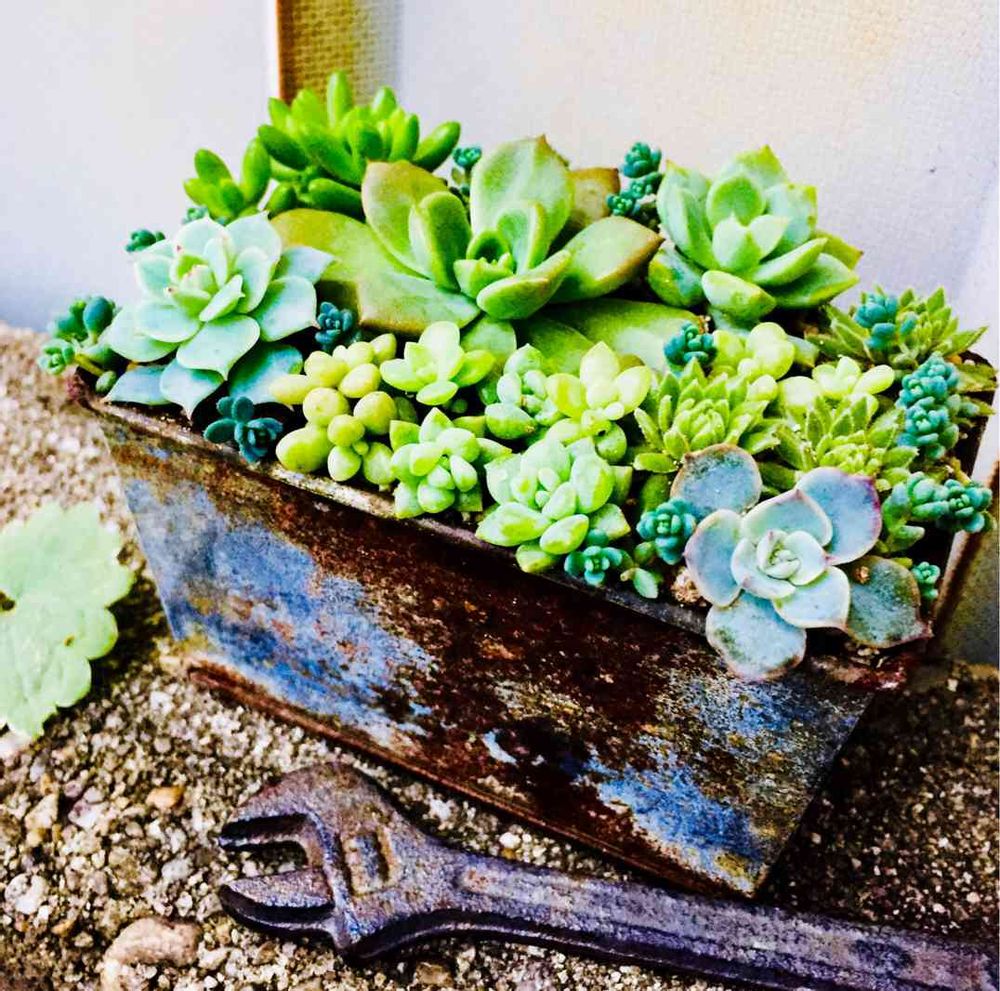 グリーンの多肉ちゃんと錆びがぴったりです✨ペイントもされたのですか?