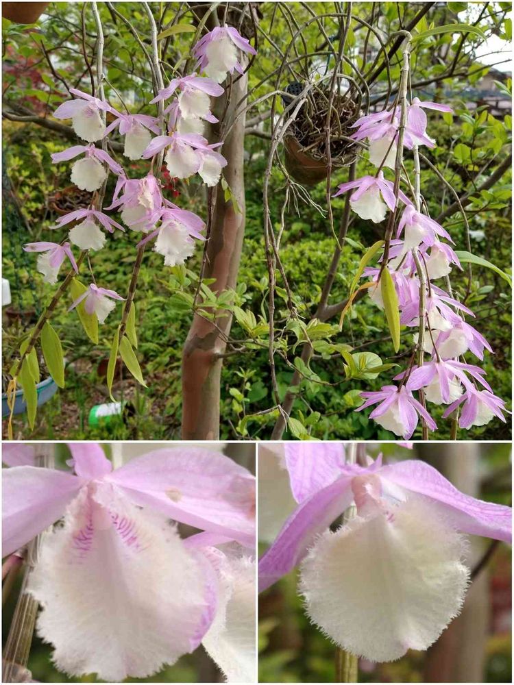 向かって右側の株は昨年も載せた、まあ、ほぼ毎年咲いている株で、Dendrobium aphyllumとして購入したものです。