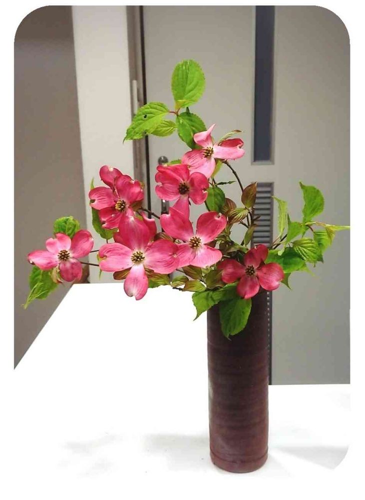雨降りで よい花がなかったけど、ご近所からハナミズキをいただきました♪