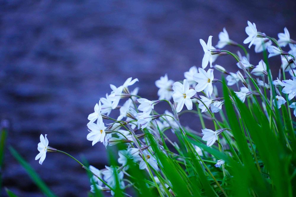 背後は川やろか❔背後が暗いけん、ハナニラ🌼の白が際立ち、綺麗やね🤗