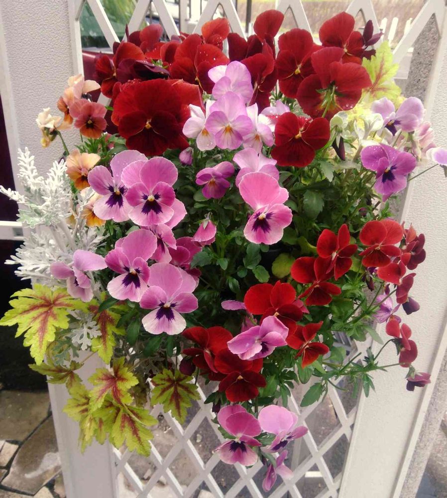 先月upしたよく咲くスミレのハンギング、ひと月半が経過して勢力図が変わってきました😅