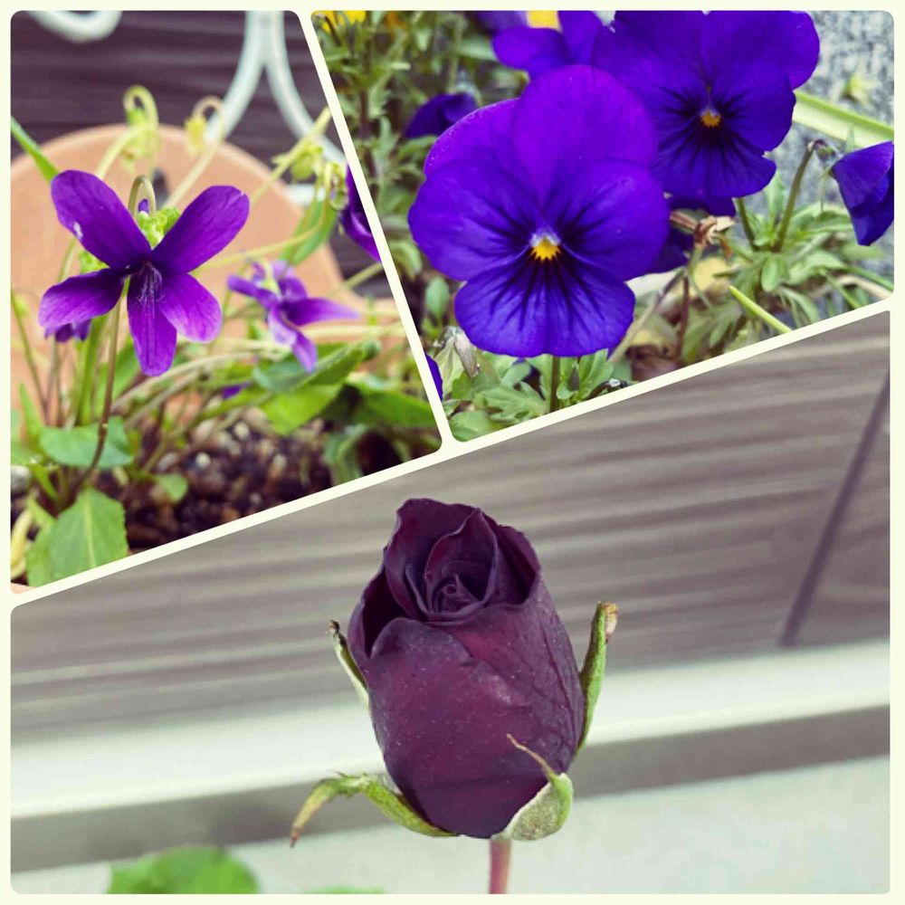 ルイさんやはり一番か…シックな蕾です…🥰この間取ってきたスミレも元気、青紫のビオラももう終わりそうですがまだ綺麗な色です💕