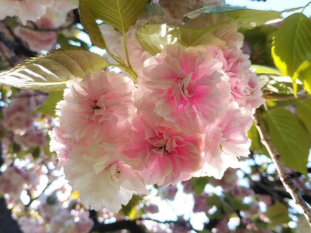 ポンポンとした八重桜🌸朝日に透け🌸灯りみたいでとても✨綺麗✨でした😌