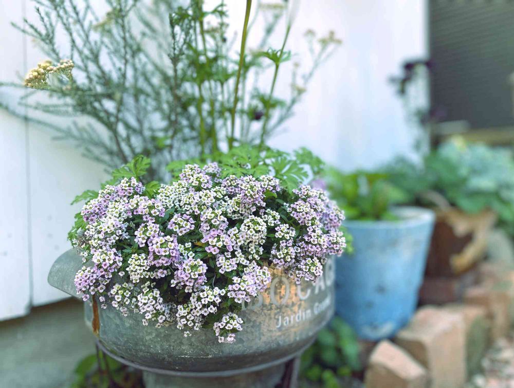 鉢からこぼれ落ちるアリッサムが好き❣️