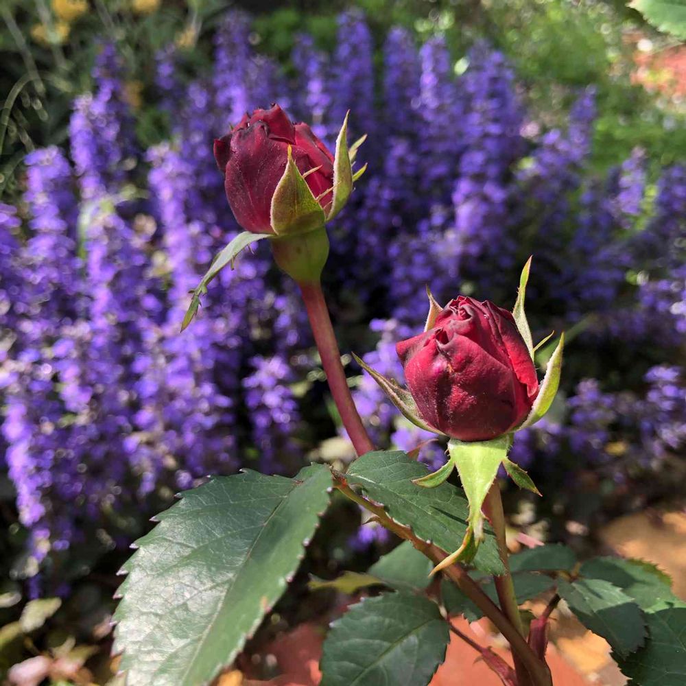 背景のアジュガとコントラストが素敵💕