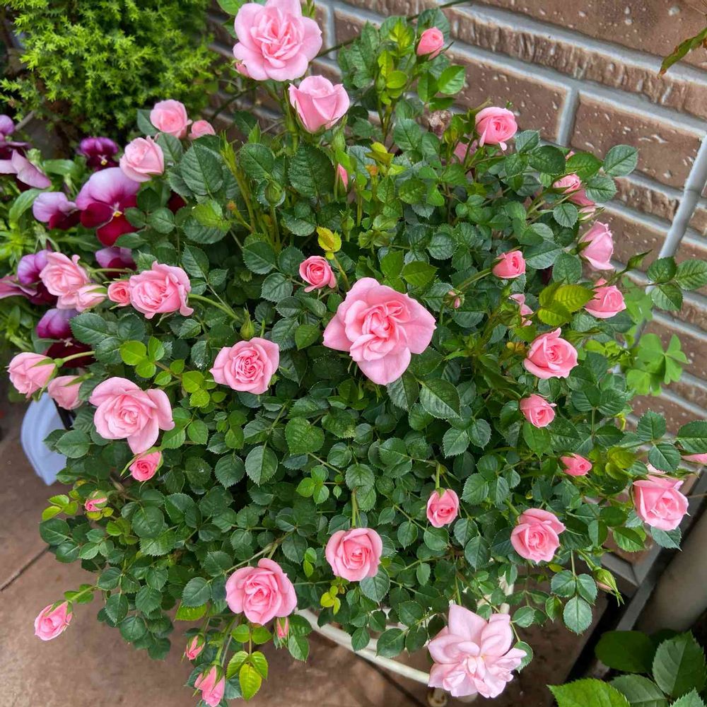 1週間始まりの朝、ミニバラ🌹ピーチ姫