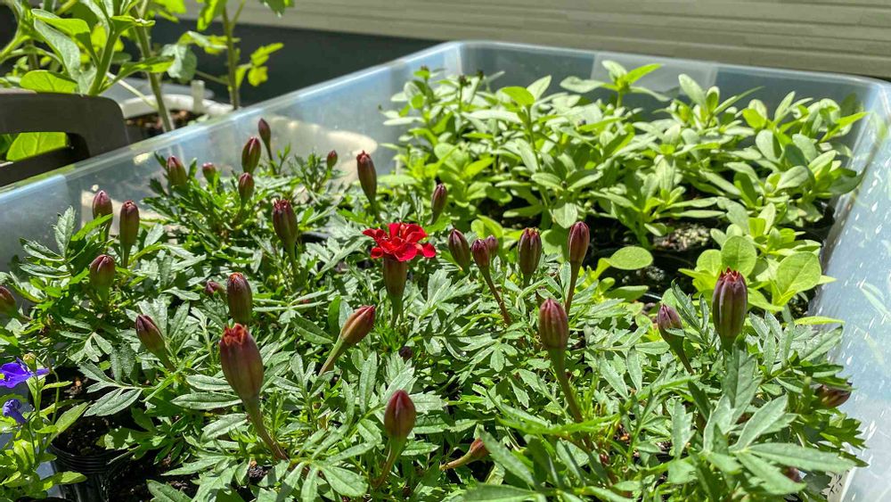 前方は種まきマリーゴールドストロベリーブロンド🌼💓✨まもなく開花😍