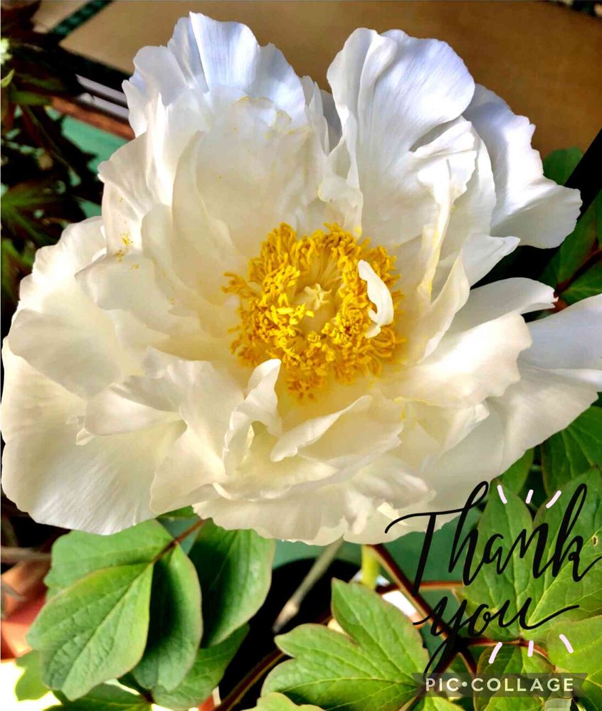 (母No.104)実家で白の牡丹が咲いたそうです❣️強風の二日間は縁側に避難させて😅今日も元気に華やいでいるようです🎶