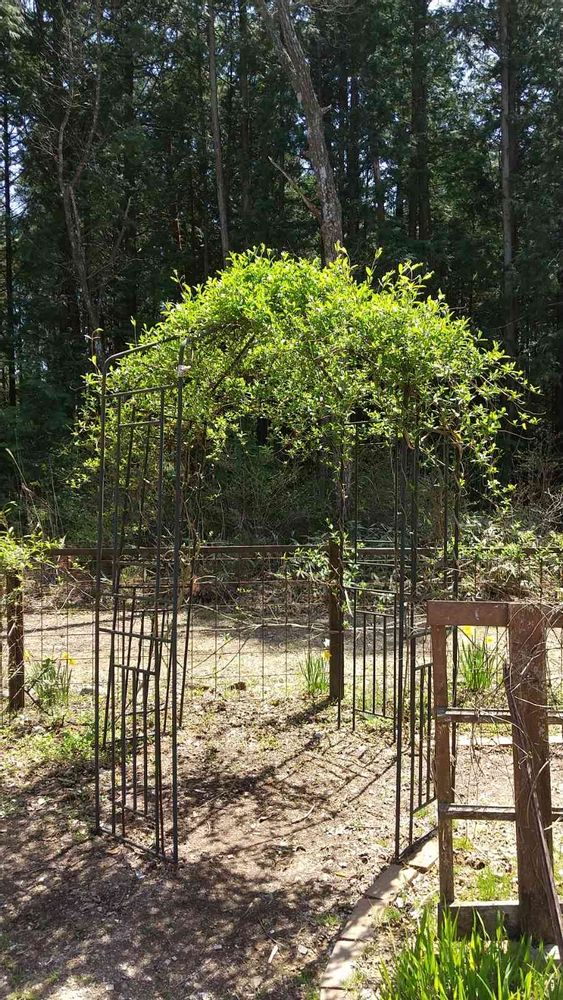 スイカズラを這わせてます、このアーチ(で、いいのかな?)…崩壊しかけてます😓