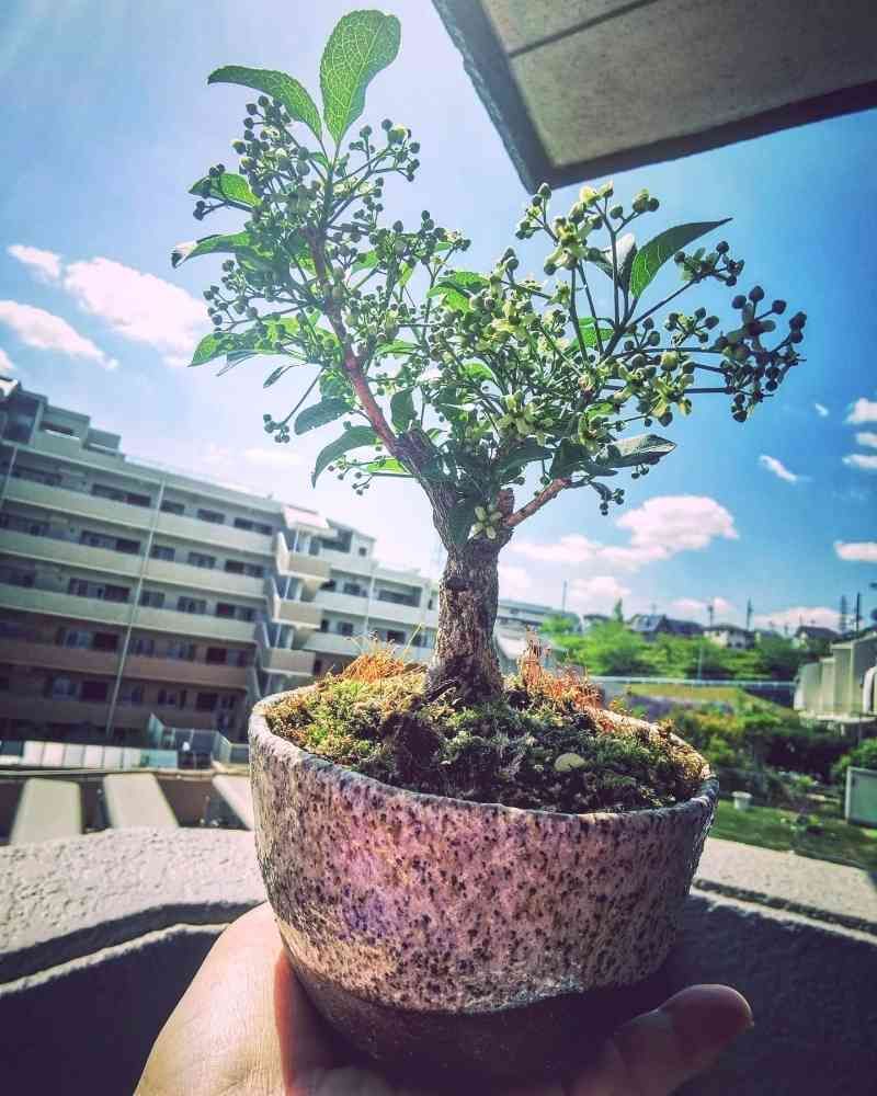 広葉樹のお花って小さくて可愛くって群れてパッと咲くから好きなんだけど、盆栽にすると蕾もお花も一つ一つが目立ってまた可愛いね😆💕