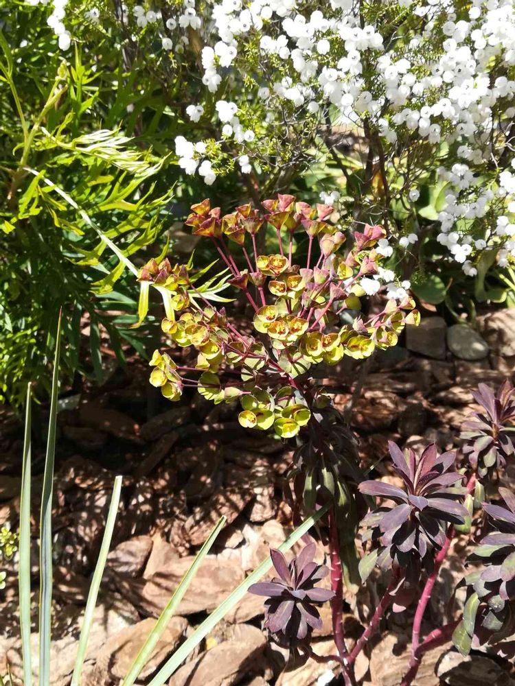うちも、ブラックじゃないけど、ユーフォルビアをネイティブコーナーに植えてます♪😁グレヴィレアやバンクシアの間にあって、良いアクセントになりますよ!