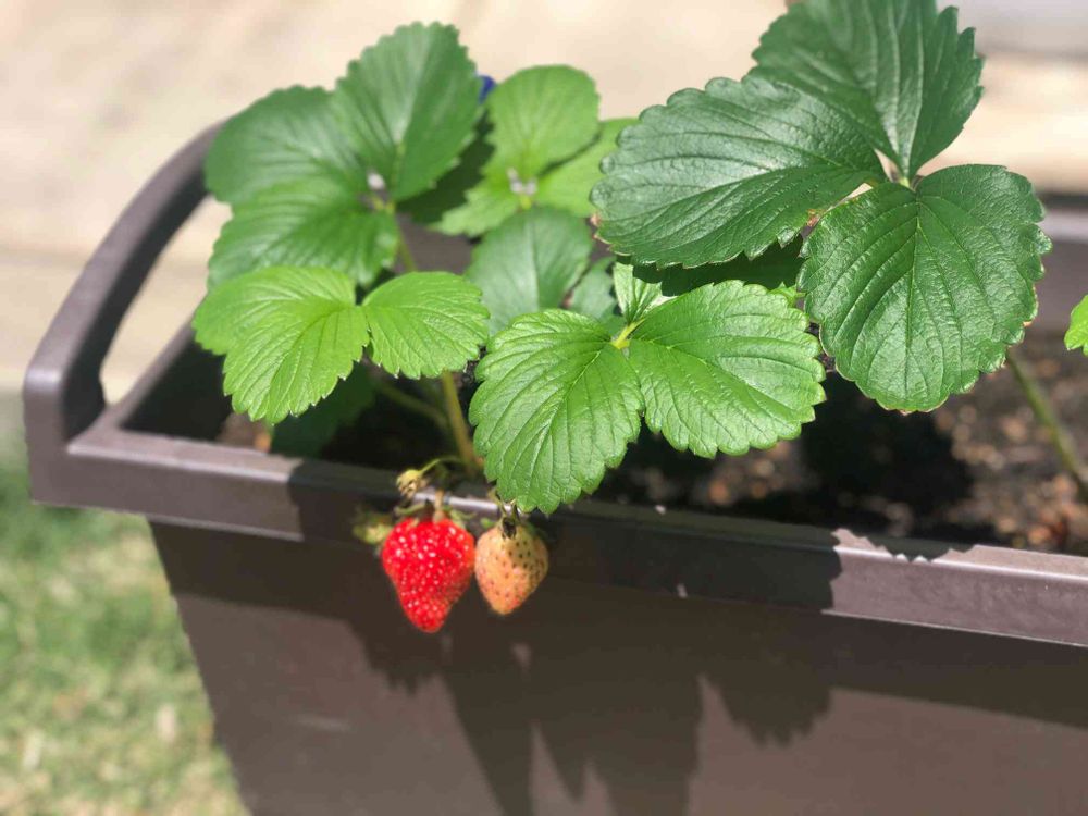 昨年末に紅ほっぺの苗を植え付け.やっと実がなりだしました🍓🥰でも形がいびつ💦💦