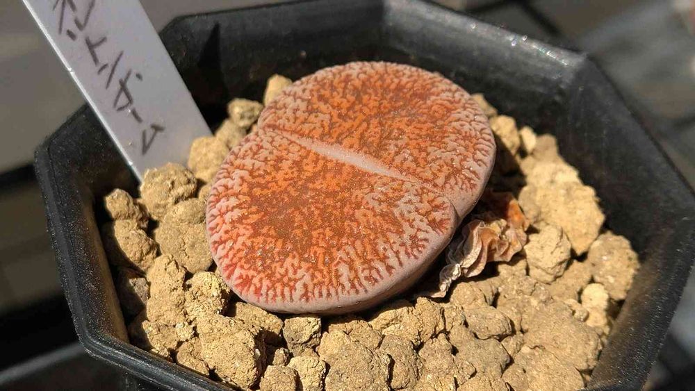 グレーの胴体に赤茶系の窓のリトープスです😊