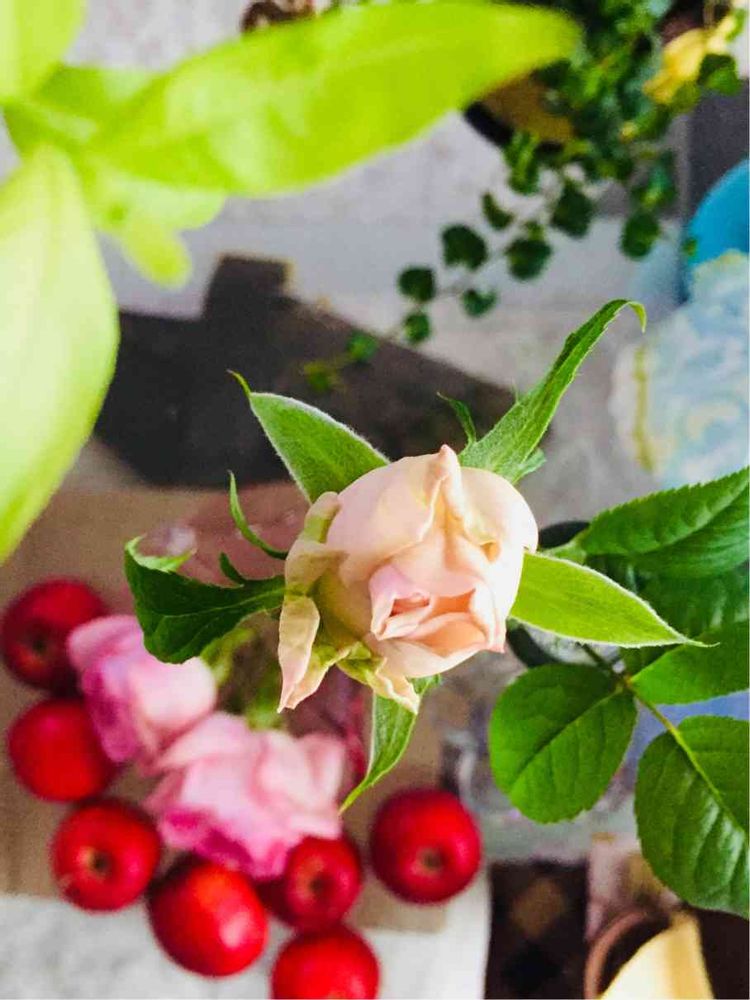 この薔薇さん✨✨アプリコットピンクの可愛い子☺️ 香りもいいんですよ🌸🌸(*^^*)