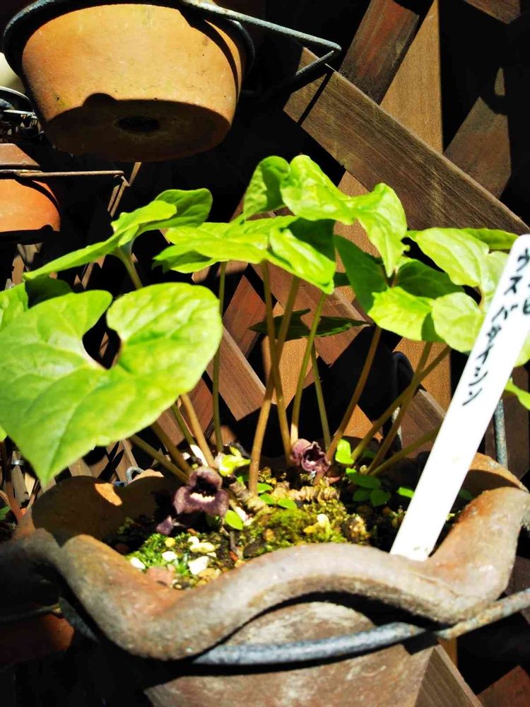 晴れてきました。朝は小雨🌂でした。ウスバサイシン葉が広げこどもの花を守る傘みたいです😃日傘・雨傘と、これなら大丈夫ですね🙇