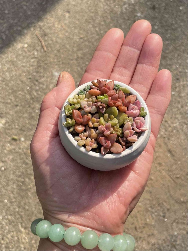 年末に色々な多肉から葉がポロポロ落ちて生まれた多肉ベビーだけを集めて置いておいた小さな鉢が成長したベビーで密密になってます✨