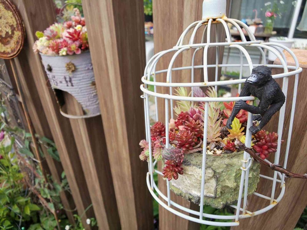 上手だね〜👏✨これお子様の寄せ植えなの?鳥さんじゃなくチンパンジーってところすごく可愛いですね😍