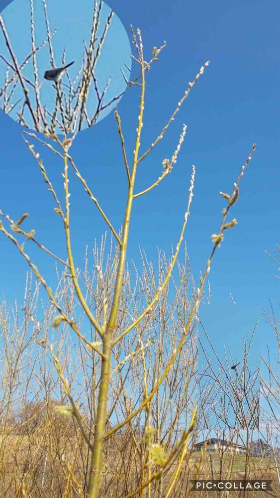 大きな猫柳の木ですね、四十雀はとなりのきにも止まってますね。