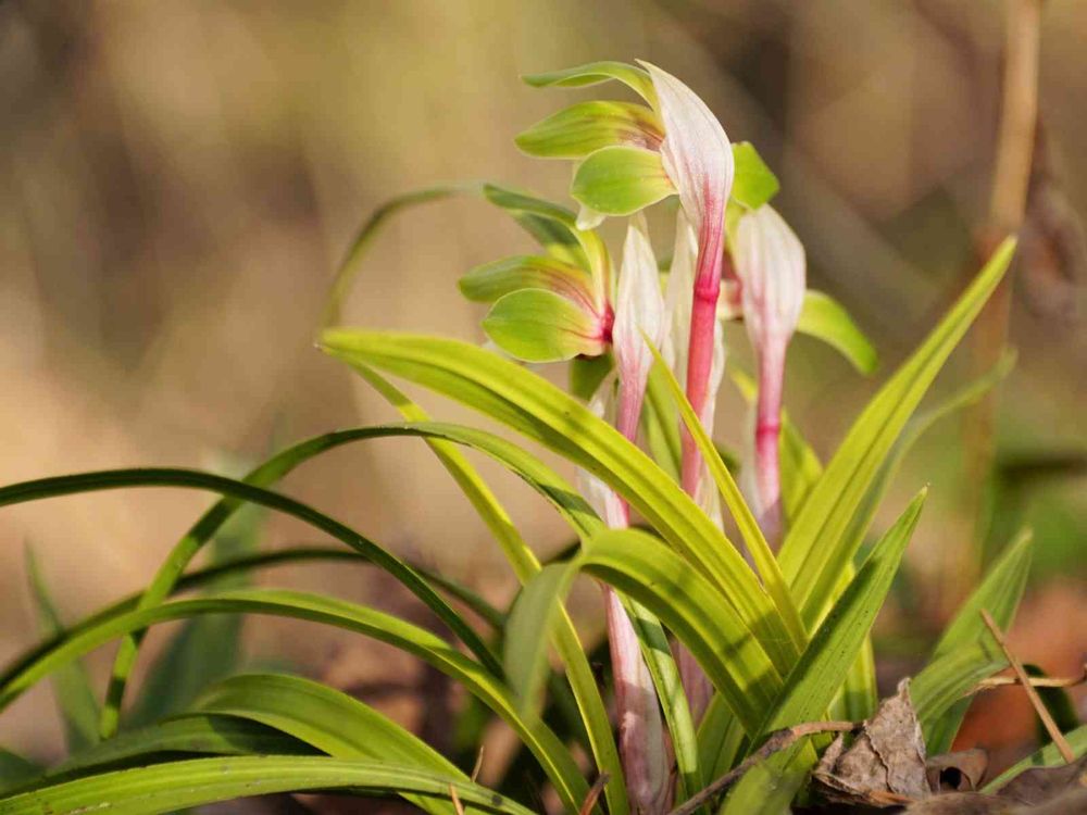 シュンランの控えめな、でも春らしい色合いの花、好きです。ジジババと呼ぶ人がいるので