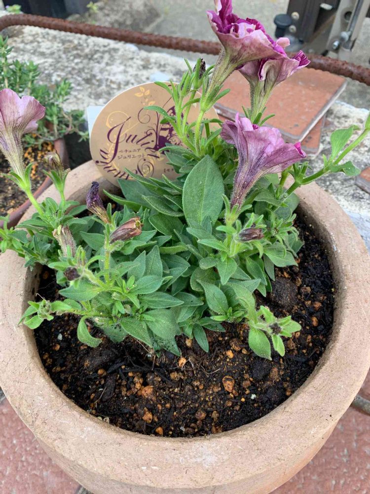 この植木鉢は買った時からペチュニアを植えようと決めていて、やっと植えられました😊